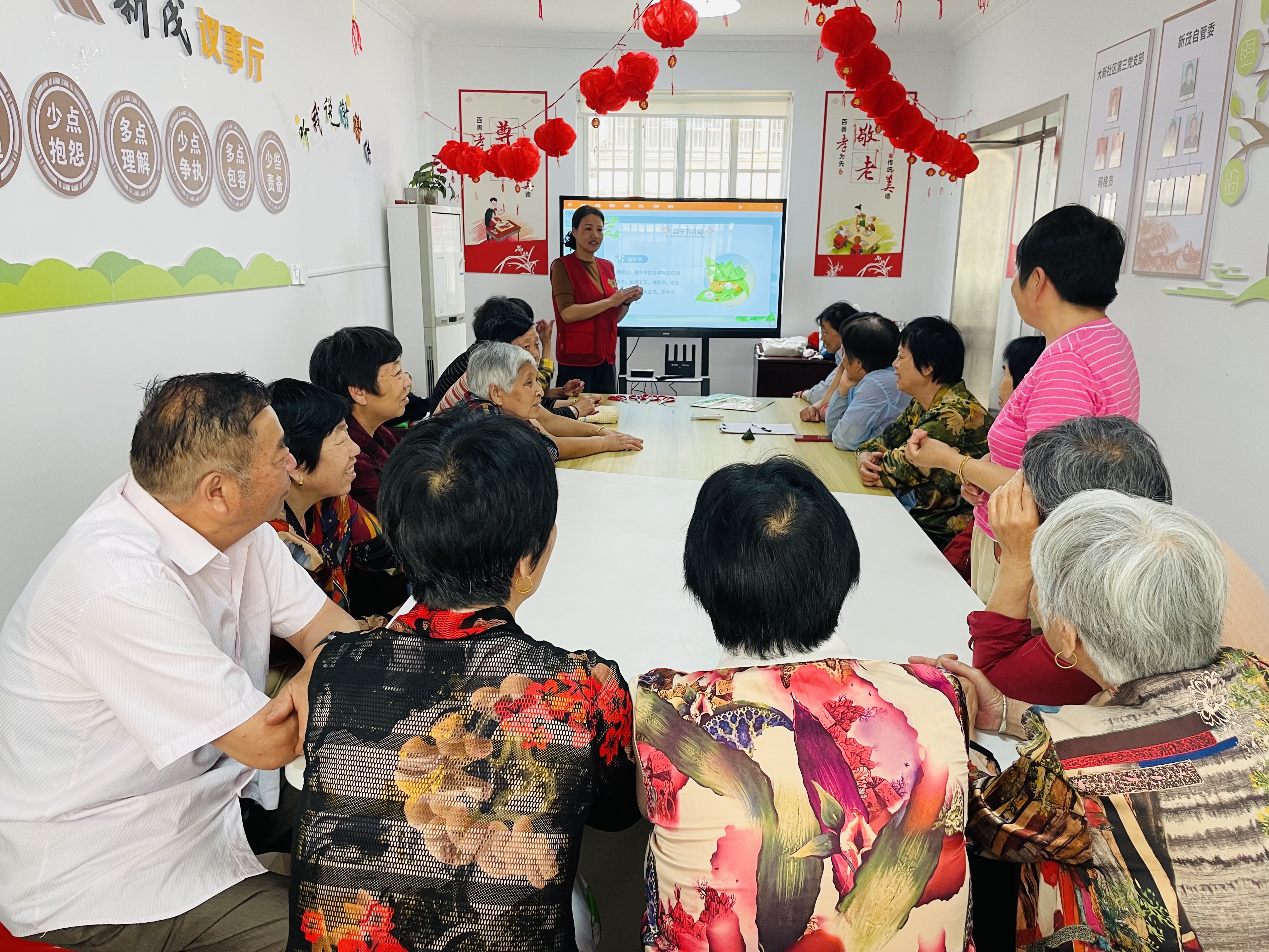 活动伊始,工作人员为老年朋友们介绍端午节的历史渊源和传统风俗。从屈原的悲壮故事到龙舟竞渡的壮观场面,从艾草菖蒲的驱邪寓意到五彩丝线的祈福象征,每一项传统习俗都蕴含着深厚的文化意义。