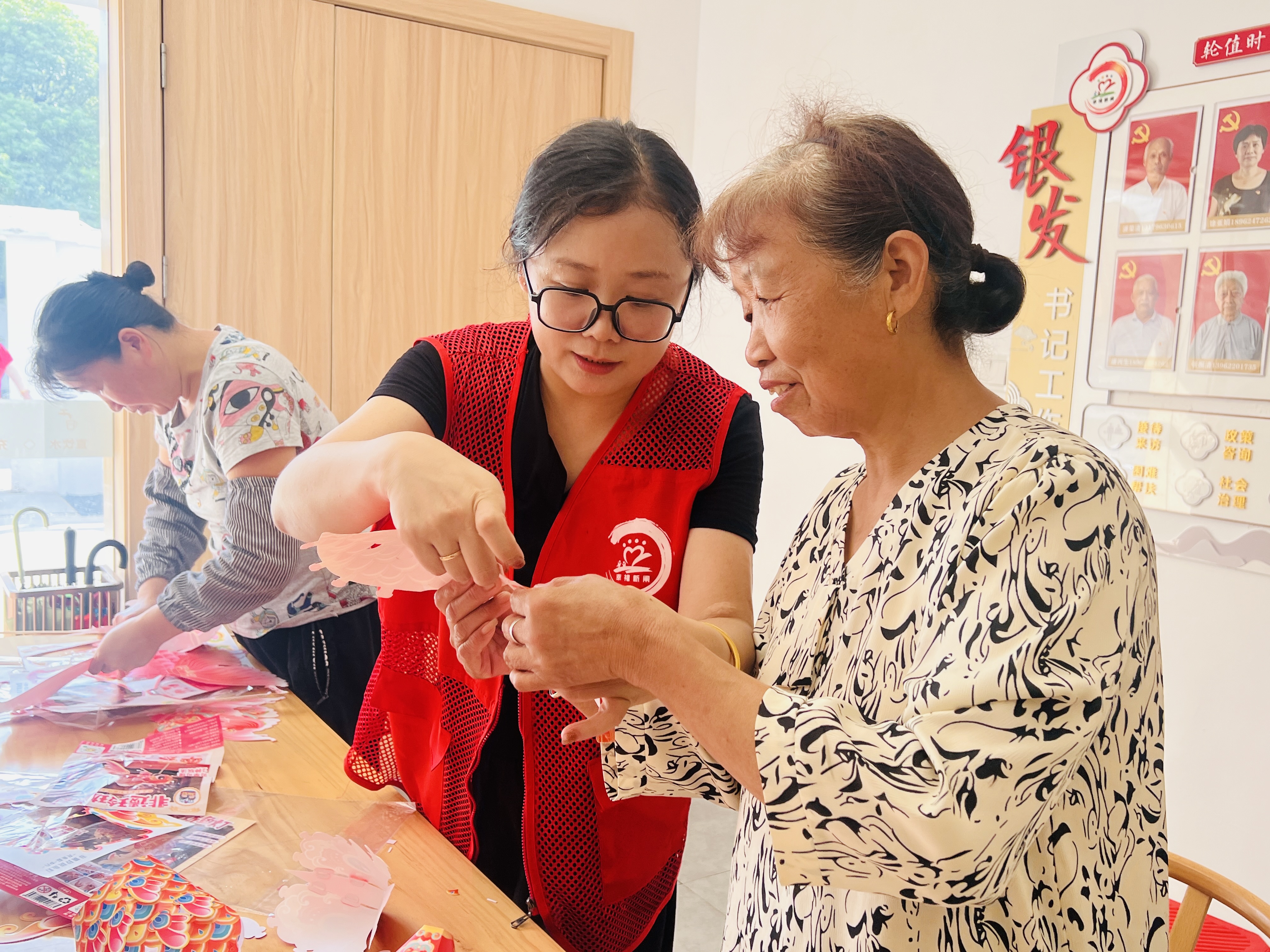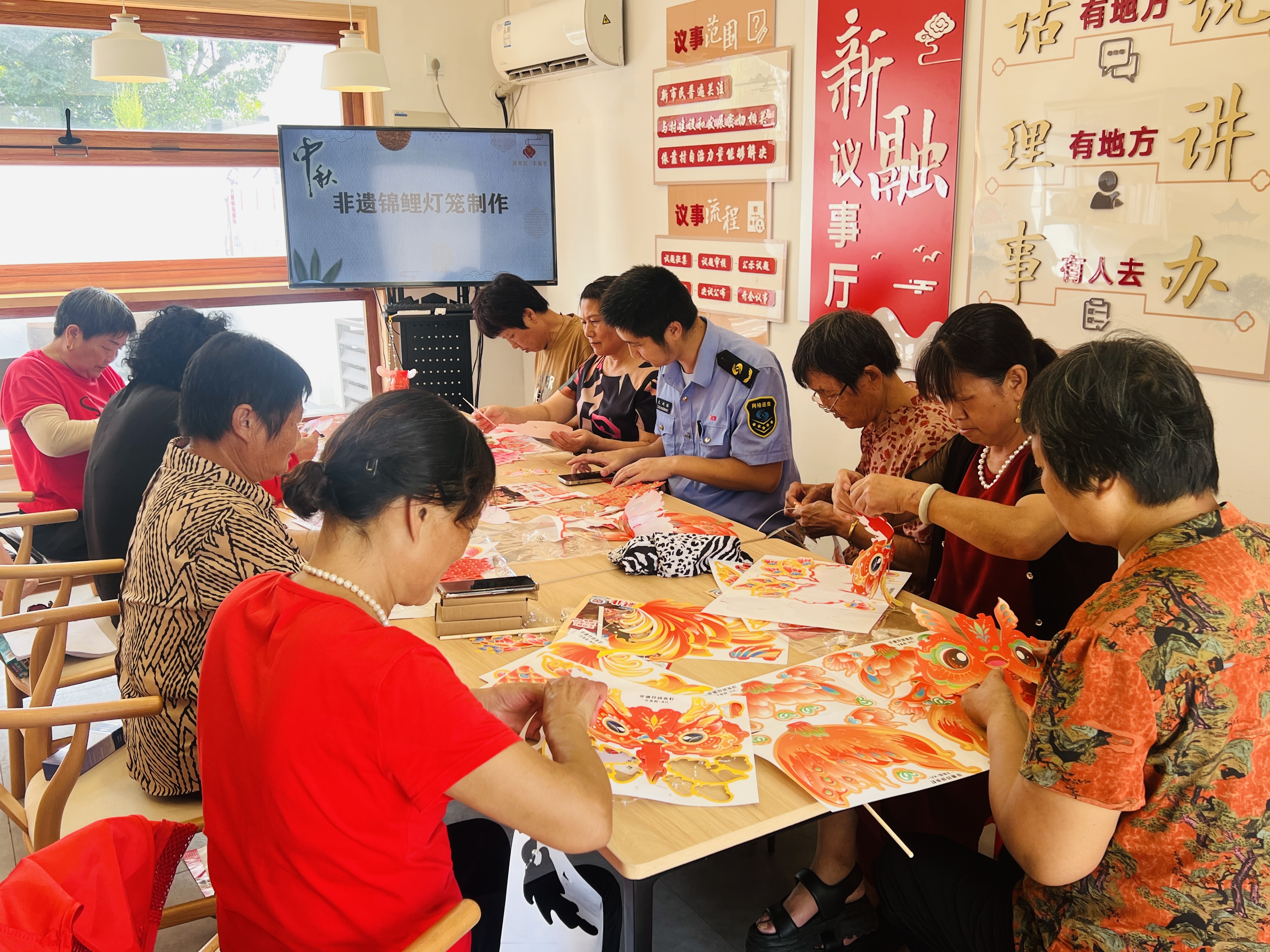 随后,村民们化身能工巧匠,细心地剪裁、粘贴、装订,小心翼翼地制作非遗幻彩鱼灯。大家一边制作、一边交流心得,不一会儿,一个个栩栩如生的锦鲤花灯就呈现在大家眼前。小小的灯笼,不仅照亮了中秋的夜空,更蕴含着对中秋佳节的美好祝愿。