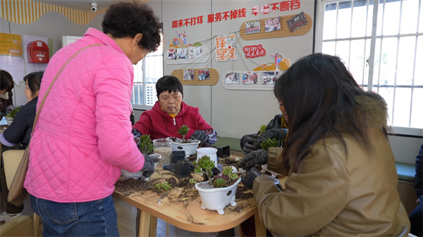昨天上午,“锋享家”阵地里热闹非凡,一场多肉拼盘创意园艺活动正在进行。居民们手持小铲子、小喷壶,化身“巧手花匠”,指尖翻飞间,一盆盆造型别致的多肉拼盘制作完成。大家围在一起交流养护心得,欢声笑语弥漫在整个空间。“这里冬暖夏凉,比在室外活动舒服多了,而且活动特别丰富,小孩子有玩乐的地方,我们也能在此聊天休息,真是个好地方。”居民王阿姨用手机记录下热闹的场景,难掩激动。