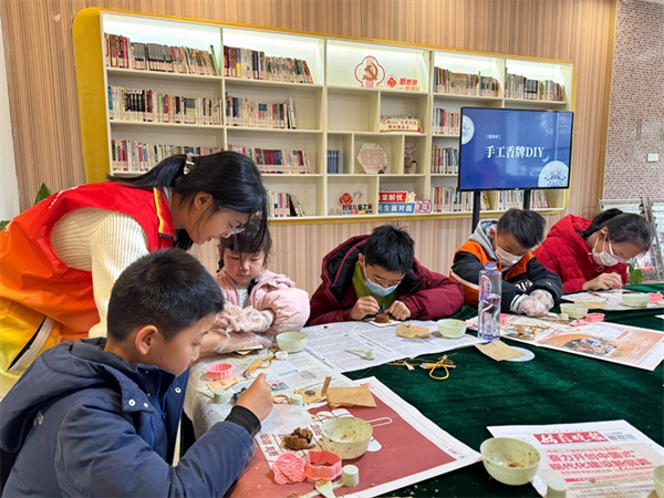 实践环节中,志愿者分发天然香料、模具与制作工具,手把手示范调香、压模、修边步骤。孩子们化身“小小匠人”,有的认真称量香料配比;有的小心翼翼脱模;还有的在香牌背面刻下专属印记。现场香气萦绕,欢声不断,一件件造型各异的香牌陆续诞生,既有传统吉祥纹样,也有童趣十足的自创设计。