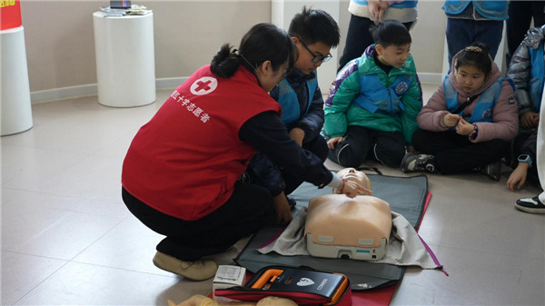“一旦发现火灾,要立即拨打119,并保持镇静。小火设法扑灭,大火尽快撤离……”2月5日下午,30多名青少年走进市民急救体验馆,先后参观了情景模拟区、互动体验区、互联成长区三大区域,了解关于事故安全、自然灾害、意外伤害、公共卫生等方面的急救知识。在急救互动体验环节,学生们学习了心肺复苏、止血、包扎等急救技能;在虚拟地震体验区,孩子们身临其境感受到了地震的可怕、生命的脆弱。“置身在这些虚拟的‘真实’场景里,我们真正接受了一次生动的安全教育,学到了许多自救、互救的生存技能。”市白鹿小学学生秦闻韬参观结束后说道。