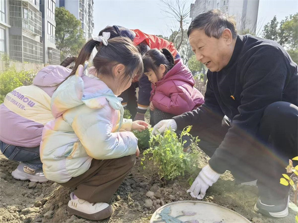 “今天我种的是石蒜,以后我要常来看它,给它浇水!”一位大班小朋友兴奋地说。老党员黄阿姨也表示:“和孩子们一起劳动,不仅学到了种植知识,更感受到社区大家庭的温暖。百草园是我们共同的家园,大家齐动手,感情更深了。”种植结束后,大家围坐分享种植心得与美好期待。孩子们稚嫩的话语、志愿者们专业的养护计划、老党员们对社区发展的建议,让小小百草园洋溢着邻里温情与自治活力。