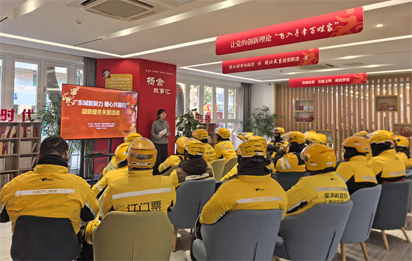 近日,经开区(杨舍镇)城东街道联合杨舍镇新时代文明实践所举办“东城聚新力 暖心共前行”关爱新就业群体主题活动,为近百名奔忙于城市一线的快递员、外卖骑手送上温暖与祝福。